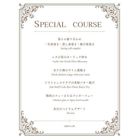 地元福岡や九州の新鮮で上質な素材を活かした、本格的なベトナム料理を提供されています。